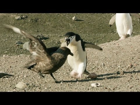 Skuas will eat penguin eggs if they get the chance, but these chinstrap penguins are having none of it! Behind the scenes from David Attenborough’s Seven Worlds, One Planet