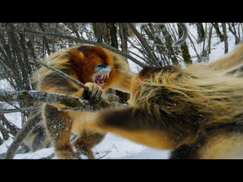 Snub-nose monkeys in China face a gruelling winter with little food and no shelter from the cold. These two families will fight to the death for a meal.