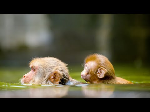 In a jungle just outside Katmandu, Nepal, a family of very special monkeys makes the journey to relax and play in a local pool.