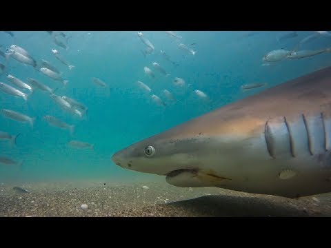 Blacktip sharks, pelicans and tarpon feast on millions of grey mullet as the fish migrate along the coast of Florida.