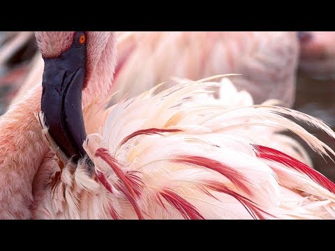 Flamingos feast on poisonous green algae with one colourful consequence.